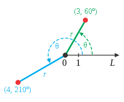 Спрямо полярна координатна система, която е изобразена на фигурата по - долу: