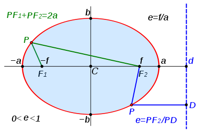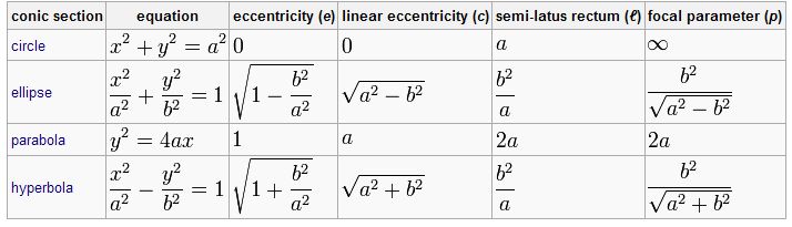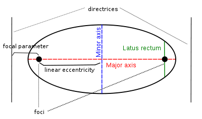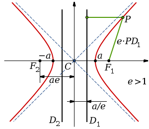 . (p) е разстоянието от фокуса (един или два) до (съответната) директриса. Въвеждаме параметрит (а), (с) с формулите: